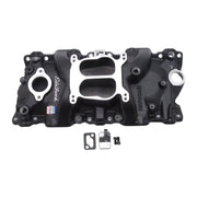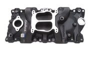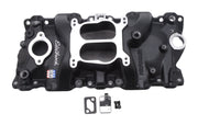 Le collecteur d'admission Performer Edelbrock #21043 est conçu pour les V8 Chevy de 262 à 400 pouces cubes de route qui ont des têtes avec des trous de boulons centraux inclinés, de 1987 à 1995. Ce collecteur accepte les modèles récents de col d'eau, de climatisation, d'alternateur, HEI, a des croisements d'eau arrière et accepte les starters chauffés par échappement. Pour les têtes en aluminium de série de 1987 à 1995, utilisez le n° 2101. Ne convient pas aux têtes Chevrolet Bowtie ou LT1. Ce collecteur offre une finition noire durable avec revêtement en poudre pour une protection durable et un look distinctif.