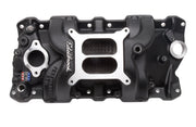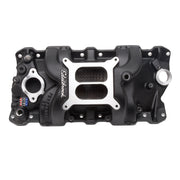 Le collecteur d'admission Performer RPM Edelbrock #71013 est conçu pour les moteurs Chevy V8 262-400 cid de 1955 à 1986, pour une puissance maximale et une large courbe de couple pour les moteurs de rue/marins hautes performances. Fournit une puissance comme un plan unique et une réponse de l'accélérateur comme un plan double. A des dispositions pour usiner un tube de remplissage d'huile. Aucune disposition pour le starter chauffé par échappement ou de style stock. Accepte les derniers modèles de col d'eau, de climatisation, d'alternateur et de HEI. S'adapte aux têtes Chevrolet Bowtie en fonte mais ne s'adapte pas aux têtes en fonte de 1987 et ultérieures. Les collecteurs d'admission ne s'adaptent pas sous le capot de la Corvette d'origine. Ce collecteur offre une finition noire durable avec revêtement en poudre pour une protection durable et un look distinctif.
