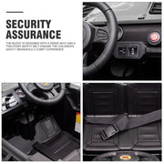 The Electric 12V Off-Road Car with Remote Control - Black is the ultimate remote control ride on toy for young adventurers. This realistic car features a distinctive grille, roll bars, real working doors, front and back fenders, and a rear storage area. With its sleek black color and volume-adjustable horn with songs, this car is sure to capture the imagination of your little driver. But it's not just about looks - this car is designed for maximum fun and safety. It has been redesigned with a larger cockpit area and increased wheelbase, providing kids with more legroom and improved stability. The car can drive at two speeds forward, reaching a maximum speed of 2.61 MPH. And with the included 2.4G remote control, parents can take control and steer the car from a distance. Each Electric 12V Off-Road Car is expertly crafted using high-quality materials, ensuring long-lasting durability and safe play for your precious little ones. It is recommended for children aged 3 and up, and assembly is required. Key Features: Realistic styling with a distinctive grille, roll bars, and real working doors Front and back fenders and a rear storage area Volume-adjustable horn with songs Larger cockpit area and increased wheelbase for more legroom and improved stability 2 speeds forward and 3 speeds remote control for maximum speed of 2.61 MPH High-quality materials for long-lasting durability Product Specifications: Color: Black Type: Car Recommended Age Range: 3 years and up Assembly Required: Yes Product Weight: 33.07 lb Product Length: 43.31 in Tire/wheel size: 10.5 in Product Height: 28.35 in Product Width: 28.35 in With the Electric 12V Off-Road Car with Remote Control - Black, your child can embark on exciting off-road adventures in style. Order now and let the fun begin!