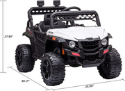 The Electric 2-Seater Jeep for Kids with MP3 and LED Lights - 12V Battery Powered for Safe Fun! Get ready for an adventure with the Electric 2-Seater Jeep for Kids with MP3 and LED Lights! This ride-on car is perfect for little explorers aged 3-8 years old, with a maximum weight capacity of 66 lbs. With its realistic UTV design and exciting features, your child will have a blast cruising around in this battery-powered rc ride on car. Key Features: Manual & Parental Control: The parent can control the tractor to enjoy the happiness time with the child. The child can also operate it by themselves using the foot pedal to control ideal speeds. There are 2 speeds for manual control and 3 speeds from 1.8-3.7 mph to operate by remote control. Safety Guarantee: This kids ride-on car is certified by ASTM F963 CPSIA CPC, ensuring your child's safety. It features a slow start function, parental remote control priority, adjustable seat belt, lockable doors, and spring suspension wheels to prevent your child from falling off or any other danger. Build-in Fun: The ride-on vehicle comes already assembled with an MP3 player, USB port, AUX input, FM radio, and bright LED headlights to provide even more fun for your child. The rear storage bin allows your kids to take their toys along with them on their adventures. Realistic UTV Design: With bright LED headlights, control pedal, detachable trailer (optional), realistic engine sound and horn, and a rechargeable battery with 2*12V motor, this ride-on car offers an authentic and immersive experience. Rechargeable Battery: Equipped with a 12V 4.5AH battery, this electric vehicle has a charge time of 8-12 hours. Its overall dimensions are 39.17"L x 25.98"W x 27.95"H. Product Specifications: Brand: Kch1688 Age Level: 8-11 Years Year: 2021 Theme: Car Custom Bundle: No Character Family: Kids Material: PP/Iron Dimension: 42.91" X 28.34" X 25.19" Weight Capacity: 66 lbs Charge Time: 8-12 hours Speed: 1.8-3.7 mph Type: Ride on Car The Electric 2-Seater Jeep for Kids with MP3 and LED Lights is designed for safe and exciting playtime. The spacious seat allows for free movement and comfortable driving, while the doors with safety locks, adjustable seat belt, parental remote control, and suspension system ensure your child's safety while driving. The UTV is also equipped with an MP3 player, AUX, USB port, FM radio, bright LED headlights, and Bluetooth connectivity, providing your children with a fun and entertaining experience. The wear-resistant tires with spring suspension and slow start technology improve stability and protect your kids, eliminating the hassle of inflating. Plus, the rear storage space allows your kids to bring their favorite toys along on their adventures. This electric car will make a perfect gift for your child's birthday or Christmas! Package includes: 1Ă— Battery Powered Ride on Car 1Ă— Remote Control 1Ă— Charger 1Ă— User Manual