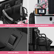 The Electric 2-Seater Kids Ride On Truck Tractor with Trailer and Remote Control - 3 Speeds, Pink Introducing the Electric 2-Seater Kids Ride On Truck Tractor with Trailer and Remote Control - 3 Speeds, Pink! This ride-on truck is designed to provide double the fun, with its spacious two-seater design and 18.5'' seat equipped with two separate safety belts. It's perfect for two kids under the age of 4 or a child aged 7 or 8, allowing them to embark on exciting adventures together. The tiltable trailer and lockable tailgate provide ample storage space for toys and snacks, making every ride a delightful experience. With two modes of operation, kids can take control of the electric car themselves using the pedals and steering wheel. They can enjoy the thrill of driving at two different speeds, adding an extra element of excitement to their playtime. Parents can also take charge of the ride-on truck using the 2.4GHz remote control, which offers three speeds for added flexibility and safety. This ride-on truck is packed with multiple joyful functions to enhance the driving journey. It features a built-in AUX port, USB, TF slot, and Bluetooth connectivity, allowing kids to listen to their favorite music while on the move. The high-bright headlights not only provide visibility during nighttime adventures but also give the kids a cool and confident driving experience. Designed with durability and safety in mind, this electric vehicle for kids is constructed using non-toxic PP and iron materials. The wheels are equipped with a spring suspension system, ensuring a smooth and comfortable ride on various terrains, including asphalt, brick, and cement roads. Parents can have peace of mind knowing that their children are riding in a safe and secure vehicle. Looking for the perfect gift for your child's birthday or Christmas? Look no further! The Electric 2-Seater Kids Ride On Truck Tractor with Trailer and Remote Control is an ideal present. It comes with two large-capacity 12V7AH batteries, providing ample power for extended playtime. The two powerful motors ensure a thrilling speed range of 4.5-5.5 km/h. With its generous size of 47''x31''x27'', this ride-on truck can accommodate a maximum weight of 88 lbs. It's a gift that guarantees endless fun and adventure for your little ones. Specifications: Color: Camo Pink Battery: 24V (12V7AH*2) Charger Input: 100-240V Charger Output: 28.8V 500mA Motor: 200W*2 Charge/Use Time: Charge - 14 hours, Use - 45-60 minutes Loading Capacity: 88 lbs Speed: 4.5-5.5 km/h Size: 47''x31''x27'' Height Limit: 43.3'' Package Content: 1 x Electronic Ride On Car 1 x Hardware Bag 1 x Manual Instruction 1 x Remote Control