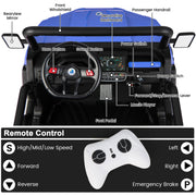 The Electric 2 Seater UTV Dump Truck with Remote Control and Functional Dump Bed is the perfect ride-on toy to create unforgettable childhood memories for your little ones. With its realistic tractor appearance, bright LED headlights, and rearview mirrors, this ride-on truck offers an immersive and realistic driving experience for kids. Operating the dump truck is a breeze - simply press the power switch, push the shift lever, and step on the foot pedal to make the car move forward, backward, or stop. The automatic dumping and lifting gear box, along with the openable tailgate and shovel, will surely capture your child's attention. But the fun doesn't stop there! This off-road UTV is equipped with cheerful music and horn sound, providing unlimited entertainment during the ride. Plus, the USB, MP3, and phone connection functions allow for even more entertainment options. Safety is our top priority, and parents can rest assured that our 12V battery-powered dump truck is both safe and reliable. The spring suspension system effectively absorbs shocks and minimizes impact, ensuring a smooth and comfortable ride. The seat is equipped with a safety belt for enhanced protection, and the soft start and stop technology prevents sudden acceleration or braking, keeping your child safe and comfortable. For added convenience, parents can control the ride-on UTV freely with the included 2.4G remote control. Key Features: Tiltable dump bed can dump or lift automatically by the dump switch The tailgate can be opened if needed Large dump bed to store various kid’s toys, sands, fallen leaves, etc. The shovel is easy to be fixed on the shovel holder 2 seats and 110 lbs weight capacity for 2 young kids Odorless PP material and sturdy steel for great durability Built-in music, aux input, USB port, and wireless connection for endless fun The truck can move back and forth when you press the “rocking mode” button 2.4G remote control has 3 optional speeds and emergency brake button One-start button, forward/stop/reverse lever, and foot pedal for easy operation Adjustable safety belt and lockable doors keep children safe in the seat Soft start technology ensures safer and more comfortable driving experience 4 wear-resistant wheels and suspension springs for a smooth ride The media center displays remaining battery power Product Specifications: Color: Pink/Blue Material: PP, Steel Overall Dimension: 46.8" x 26.7" x 25.5" (L x W x H) Size of the Dump Bed: 19.5" x 8" x 4.5" (L x W x H) Weight Capacity: 110 lbs Net Weight: 47.5 lbs Suitable Age: 3-8 Years Max Speed: 2-5 mph (3-8 km/h) Recharge Time: 8-12 Hours Battery: 12V 7AH Battery Type of the Remote Control: 2 x 1.5V AAA Battery (Not Included) Get ready to embark on exciting adventures with the Electric 2 Seater UTV Dump Truck with Remote Control and Functional Dump Bed. Order yours today and let the fun begin!