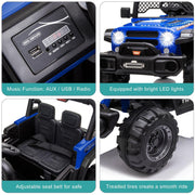 The Electric 3-Speed Kids Ride-On Truck with 2.4G Remote Control is the perfect gift for children aged 3-6. This ride-on truck is designed to provide hours of fun and excitement for your little ones. With its sleek and stylish design, it is sure to turn heads wherever it goes.Featuring an ASTM certification, this rc ride on truck is guaranteed to meet the highest safety standards. It is also easy to assemble, allowing you to get your child behind the wheel in no time. The automatic reset fuse provides added protection for the circuit, ensuring a safe and enjoyable ride.One of the standout features of this ride-on truck is the built-in AUX outlet. This allows kids to plug in their media devices and drive while jamming to their favorite music. The soft start technology ensures that kids are not in danger of sudden acceleration or braking, providing a smooth and controlled ride.Powered by a rechargeable 12V battery, this ride-on truck comes with a charger that allows for hours of playtime. The 2.4G remote control gives parents the option to let their child drive manually or safely guide them using the remote control when necessary. The adjustable seat belt ensures a safe and comfortable ride for your child.This ride-on truck comes in a variety of colors to suit your child's preferences - Black, Pink, White, Blue, and Rose Red. It is made from high-quality PP plastic and metal, ensuring durability and longevity. The maximum user weight is 66lb (30kg), making it suitable for single riders.With 3 speed options in RC mode and 2 speeds accessible in manual mode, your child can choose the level of excitement they desire. The speed ranges from 1.9 to 2.6 mph, providing a thrilling ride for your little adventurer.The overall dimensions of this ride-on truck are (41.9 x 28.2 x 28.1)" / (106.43 x 71.63 x 71.37)cm (L x W x H), making it the perfect size for your child to maneuver. The recommended environment for this ride-on truck is both indoor and outdoor, allowing your child to enjoy their adventures wherever they please.Assembly is required for this ride-on truck, but don't worry, a manual is included to guide you through the process. The controller requires 2 x AAA batteries (not included) for operation. The remote control operates on a 2.4GHz frequency, ensuring a strong and reliable connection.In conclusion, the Electric 3-Speed Kids Ride-On Truck with 2.4G Remote Control is a must-have for any child aged 3-6. With its safety features, stylish design, and exciting features, it is sure to provide endless fun and adventure. Get one for your little one today and watch them explore the world in their very own ride-on truck.Package Includes:- 1 x Electric Car- 1 x 2.4G Remote Control- 1 x Charger- 1 x Manual