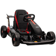 The Electric Go Kart for Kids Ages 6-12 with Remote Control and Music Horn Oh, how this changes your enjoyment of being outside! Little racers won't want to get off this cool Aosom kids go kart. The stylish design and fully functional configuration provide your child with the ideal drift car experience. Allow them to traverse soft terrain on these tough, wear-resistant tires. With big, wide wheels, seatbelt-equipped riding, a tail light in case of dusk, and a horn to alert people in the way, you can provide an extra safe ride. Variant 1: Electric Go Kart for Kids Ages 6-12 with Remote Control and Music Horn Experience the thrill of a real drift with the 24V twin motors and a maximum speed of 7.5 mph. The high-quality steel frame and plastic material ensure durability and stability. The EVA wheels provide improved traction on unforgiving terrain, allowing your child to conquer any challenge. The separate horn and music buttons deliver loud and clear audio for an immersive ride. Monitor the remaining battery power with the power indicator. The included remote control allows for parental control or easy operation by the kids. Choose between two-speed settings for manual control or three-speed settings for remote control. Safety is a top priority with the 5-point safety belt and tail light included. Key Features: 24V twin motors and a max speed of 7.5 mph offer a real drift experience High-quality steel frame and plastic material EVA wheels for improved traction on unforgiving terrain Separate horn and music buttons for loud and clear audio Power indicator to monitor how much power is remaining in the battery A remote control is included for parental control or letting kids operate easily Two-speed setting (manual) or three-speed setting (remote control) 5-point safety belt and tail light included Product Specifications: Color: Black Material: PP, Steel Overall Dimension: 45.75" L x 29.25" W x 22.75" H Seat Dimension: 10.25" W x 9.5" D x 7.75" H Battery: 24V, 7AH First charging: 4-6 hours, regular charging: 8-12 hours Speed: 3.7-7.5 mph EVA Wheels: ?9.5" Weight Capacity: 110 lbs Certification/Recommended Ages: 6+ years Certifications: SOR Item Label: 370-234V80BK Note: Always monitor your children while they are riding. 2 AAA batteries not included. Package includes: 1 x Electric Ride-on Kart, 1 x Manual