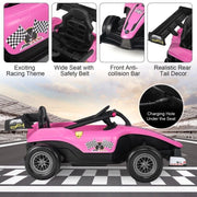 The Electric Racing Truck for Kids with Remote & Manual Control and Lights - 12V Girls' Ride-On Toy is the perfect ride-on toy for adventurous girls aged 3 to 7. With its super-cool racing truck design, this rc ride on toy will make your little one stand out from the crowd as they cruise through the neighborhood. The domineering appearance and realistic details, such as the horn sound and dashing head and tail lights with independent switch, create an immersive racing experience.Parents can choose between remote and manual control options to ensure a safe and enjoyable ride for their child. Kids can take control of the ride-on truck by simply pushing on the accelerating foot pedal, allowing them to experience the thrill of high and low-speed driving. For younger children who may not yet understand driving rules, parents can easily remote control the car. The remote control offers 3 speed options, giving parents full control over the speed of the ride-on truck.Safety is a top priority with this ride-on toy. The rear wheels are equipped with spring suspension, reducing shock and providing a smooth ride on all kinds of flat grounds. The soft start system ensures a gentle and safe acceleration, preventing sudden speed-ups or unexpected stops. Additionally, the ride-on truck is equipped with a safety belt, keeping your child securely seated while they enjoy their adventure.Entertainment is guaranteed with the added media function of this ride-on truck. The multifunctional dashboard allows kids to switch between music, education, ABC, and story functions. They can also adjust the volume and display the power. The ride-on truck is equipped with USB and Mp3 sockets, allowing your child to play their favorite songs while cruising around.This ride-on toy is designed to provide lasting fun. It features a 12V 7Ah battery, providing a playtime of 35-60 minutes on a single charge (depending on load, speed, road surface, and temperature). The ride-on truck is designed for one rider under the maximum weight of 66 lbs/30 kg. Its overall dimensions are 50.2" x 28.7" x 19.3" /127.5 x 73 x 49 cm (L x W x H).Key Features:- Super-cool racing truck design with realistic details- Parental remote and manual control options- 3 speed options under remote control- Safe and smooth driving with spring suspension and soft start system- Added media function for entertainment with music, education, ABC, and story options- USB and Mp3 sockets for playing favorite songs- 12V 7Ah battery for 35-60 minutes of playtime- Designed for 1 rider under the maximum weight of 66 lbs/30 kgSpecifications:- Color: Pink- Material: PP, Steel- Product dimensions: 50.2" x 28.7" x 19.3" (L x W x H)- Speed: 1.2-3.1 MPH (2-5 km/H)- Charging time: 8-12 hours- Playing time: 35-60 minutes- Battery: 12V 7AHx1- Motor: 12V x 2- Adaptable age: 3-7- Maximum capacity: 66 lbs- Net weight: 30.6 lbsThe Electric Racing Truck for Kids with Remote & Manual Control and Lights - 12V Girls' Ride-On Toy is the ultimate gift for your little adventurer. Get ready for hours of fun and excitement with this high-quality ride-on truck.