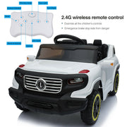 Electric Ride-On Car for Kids with 3 Speeds, Music Player, and Remote Control - White