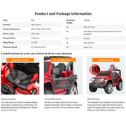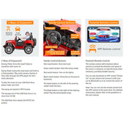 The Electric Ride-On Truck for Kids with Remote Control, LED Lights, 3 Speeds, and Music is the perfect toy for adventurous and imaginative kids. This ride-on truck offers a realistic driving experience, just like a real vehicle. With its horn, rear-view mirrors, working lights, and radio, your little ones will feel like they're driving a real car or truck. But this rc ride on truck is not just about fun and play. It also helps develop hand-eye-foot coordination, enhance courage, and build confidence in your children. They can step on the accelerator, turn the steering wheel, and shift between forward and backward moving modes, all while having a blast. One of the standout features of this electric ride-on truck is its durability and comfort. It features high-quality and wear-resistant leather seats that can comfortably fit one child. The abrasion-resistant wheels with stainless steel wheel hubs ensure that this truck can be driven on different types of roads, including rough stone roads. What sets this ride-on truck apart is its double control methods. Children can drive the truck themselves using the steering wheel and foot pedal. But for added safety, parents can also use the parental remote control with three speeds to control the truck's speed and direction. This feature helps avoid accidents, eliminates potential risks, and allows parents to solve problems when their child is too small to drive independently. The ride-on truck also boasts an intelligent design with modern features. It comes with Bluetooth, a USB port, and an MP3 port, allowing you to connect your phone and play a wider selection of songs and stories. The truck even has decorative buttons near the USB port for added style. Plus, the charging hole is hidden to prevent water from entering and enhance the toy's aesthetics. Safety is a top priority with this ride-on truck. It has a powerful engine with a slow start for safer use. The bright LED lights on the front and back of the truck ensure safe nighttime driving. The steering wheel is designed to only slightly change the direction of the truck, preventing accidental overturning. Let's dive into the additional specifications of this Electric Ride-On Truck: Spacious Seats: The wide seats are made of premium leather, providing maximum comfort for your child. The adjustable safety belt ensures their security while riding. 2 Lockable Doors: The doors on both sides of the truck can be opened and locked, making it convenient for your child to get in and out safely. Safe Driving: The headlights and taillights can be turned on to illuminate the road during nighttime driving. The engine starts slowly and softly to avoid sudden acceleration. 2 Ways of Enjoyment: The truck offers two modes of enjoyment. In driving mode, your child can drive freely with music playing. In swing mode, the truck can swing back and forth in a fixed position while playing nursery rhymes or fairy tales through the MP3 player for early education. Handy Control Buttons: The truck features various control buttons for easy operation. The red round button starts the truck, the green switch button starts the swing mode, the red switch button turns on the lights, the black switch button moves the truck forward or backward, the black button on the left of the steering wheel honks the horn, and the black button on the right of the steering wheel plays the downloaded songs. Parental Remote Control: The remote control with six buttons allows parents to control the direction and speed of the truck from a distance. It provides an extra layer of security and peace of mind. Please note that the remote control and the APP control cannot be used simultaneously. Now, let's take a look at the product and package information: Color: Red Maximum Weight: 110 lbs. Material: ABS, leather Battery Type: 12V 4.5Ah Charging Time: 7-9 hours Motor Power: 2x 25W Maximum Speed: 3.5 miles per hour Recommended Age Range: 3-6 Years Why choose us? This Electric Ride-On Truck is safe, comfortable, durable, convenient, and easy to operate. It's the perfect gift for your children, providing them with endless fun and entertainment. With its parental remote control, LED lights, Bluetooth, and MP3 player, it combines entertainment, hands-on education, and safety into a fantastic driving experience. Don't miss out on this incredible ride-on truck that will surely capture your children's attention and accelerate their brain development. Order now and let the adventures begin!