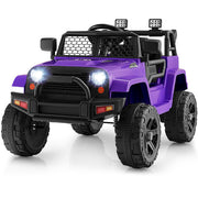 The Electric Ride-On Truck for Kids with Remote Control, Lights, and Music - Purple is the perfect choice for your little ones aged 3-7 years old! This 12V ride-on truck will provide endless fun and exercise for your kids while they enjoy driving around. With functional buttons, a steering wheel, and a foot pedal, they can easily control the car. And for your convenience, the car can also be operated using the remote control.Equipped with 2 powerful motors, this rc ride on truck can reach a safe speed of 1.5-2.8 mph. Your kids will love the added features such as music, an MP3 player, bright headlights, and a horn, making their ride even more enjoyable. The slow start function ensures a safe and smooth acceleration, while the shock absorber provides extra security during the ride. The adjustable safety belt and wide seat with a backrest ensure a safe and comfortable sitting position for your little ones.Safety is our top priority, which is why our 12V toy truck has passed ASTM and CPSIA certifications. It also features over-load protection for safe use. The ride-on truck comes in an attractive purple color and has a modern design that will surely catch your kids' attention. The steel and plastic construction makes it sturdy and durable.Here are the key features and specifications of the Electric Ride-On Truck for Kids with Remote Control, Lights, and Music - Purple:- Color: Purple- Material: Steel, Plastic- Overall Dimension: 39" x 26" x 26" (L x W x H)- Seat Size: 12.5" x 7.5" (L x W)- Net Weight: 29.7 lbs- Weight Capacity: 66 lbs- Suitable Age: 3-7 years old- Battery: 12V 4.5AH- Charger: 12V 500mA- Charge Time: 8-12 hours- Speed: 1.5-2.8 mph- Effective Distance of Remote Control: 98.4 ftPackage Includes:- 1 x Kids Ride On Truck- 1 x Remote Control- 1 x Charger- 1 x Aux Cable- 1 x InstructionAssembly is required for this ride-on truck. It is suitable for both indoor and outdoor use, allowing your kids to have fun wherever they go. With its cool look and attractive design, this ride-on truck from Honeyjoy is a must-have for your little adventurers. So why wait? Get the Electric Ride-On Truck for Kids with Remote Control, Lights, and Music - Purple today and let your kids embark on exciting ride-on adventures!
