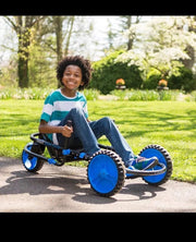 • Standout Style: Bold Blue and sleek Black accents combine for a modern, sporty look. They’ll beam as they pull up alongside friends, showing off their very own go-kart “car”.