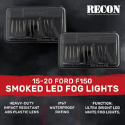 RECON Part # 264519BK - Ford F150 2015-2020 (Excluding Raptor Models) Ultra Bright White LED Fog Light 2-Pc Kit - (Replaces Factory Fog Lights) - Smoked Lens
