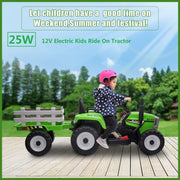 Green 12V Electric Tractor with Trailer for Toddlers - Remote Controlled Ride On Car