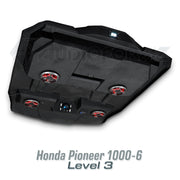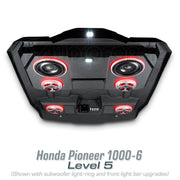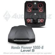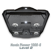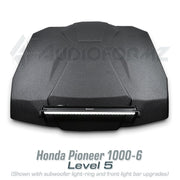 Introducing the ultimate audio upgrade for the Honda Pioneer 1000-6 – the AudioFormz stereo top. Designed exclusively for the most anticipated Honda SXS, this stereo top is a perfect match for the Pioneer 1000-6's exceptional payload, passenger capacity, and capabilities. Crafted from solid hand-laid fiberglass, it stands as one of the lightest, loudest, and most durable stereo tops on the market. The ultra-aggressive molded design not only enhances the vehicle's looks but also promises performance to match.