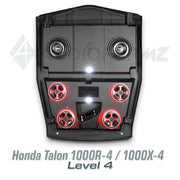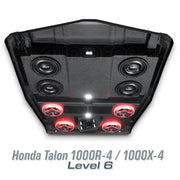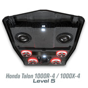 Embrace the excitement of the new Honda Talon 1000R-4/1000X-4/1000XS-4 with AudioFormz's specially designed roof system. This stereo top, tailor-made for the eagerly anticipated 4-seat sport SXS from Honda, not only meets but exceeds expectations in both style and performance. Made from solid hand-laid fiberglass, it is one of the lightest, loudest, and most durable stereo tops on the market, perfectly echoing the Talon's revolutionary design and capabilities.