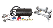 Perfect for any vehicle! These horns are not only stunning to look at but will literally stun anyone that hears them. Unlike other horns of the variety, these are made from solid brass with a triple-stage chroming process. Seriously though, looks aren’t everything -- these horns bring the whole package. Paired with this heavy-duty 5-gallon air supply, you get up to 10 seconds of insane horn blasting power, a fast refill time, and a reliable onboard air system for your air tool and inflation needs! This kit does come with the option to add our Tire Inflation Kit to it as well!
