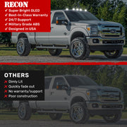 RECON's brand-new ultra high-powered front and rear-facing cab lights are the perfect upgrade for your 1999-2016 Ford Super Duty (F250, F350, F450, F550). Engineered to command attention, these lights significantly boost visibility while illuminating both the front and rear of your truck for enhanced safety and style.