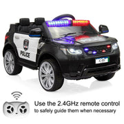Interactive 12V Kids Police Car with Music, LED Lights, and Remote Control