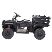 Introducing the Powerful LZ-926 Off-Road Vehicle Battery with Remote Control in Sleek Black Design. Get ready for an adventure like no other with this ride-on car that will bring endless fun to your little one. Key Features: ASTM-Certified for safety and easy assembly Large trailer for extra excitement Built-in horn and LED lights for a realistic experience Equipped with an MP3 player, radio, and USB port to play your child's favorite tunes Supports MP3 format for endless entertainment Automatic reset fuse for protection circuit Rechargeable 12V battery with included charger for hours of playtime Adjustable seat belt for safe and comfortable use 2.4G Remote control with 3 different speed modes and parking mode Forward/Reverse functionality for easy control and child's safety Recommended for children 3 to 6 years old Product Specifications: Color: Black Main Material: PP Iron Seat Width: 12.6" Seat Depth: 7.9" Maximum User Weight: 62 lb / 28kg RC Mode: 3 Speeds Options Manual Mode: 2 Speeds Accessible Speed: 3-5 KM/H Charge Time: 8-12 Hrs. Run Time: 1-2 Hrs. Battery Type: 12V 4.5AH Controller Battery: 2 x AAA Batteries (not Included) Overall Dimensions: 47.3"(L) x 26.4"(W) x 25.6"(H) Package Includes: 1 x Ride on Car, 1 x Charger, 1 x Manual With its sleek black design and powerful features, this remote control ride on car is perfect for your little adventurer. Let their imagination run wild as they explore the great outdoors in style. The large trailer adds an extra element of fun, allowing them to bring along their favorite toys on their journey. The built-in horn and LED lights create a realistic experience, while the MP3 player, radio, and USB port provide endless entertainment options. Safety is a top priority with the adjustable seat belt and easy-to-use remote control with different speed modes. Whether they're driving forward or in reverse, you can trust that they'll be safe and secure. The rechargeable 12V battery ensures hours of playtime, and the automatic reset fuse protects the circuit for worry-free fun. Suitable for children aged 3 to 6 years old, this ride-on car is the ultimate choice for adventure-loving kids.