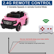 The JOYMOR 6V Electric Ride-On Truck for Kids with Remote Control, Music, LED Lights, and Horn is the perfect toy for your little adventurer. With its realistic design and cool appearance, this rc ride on truck will bring fun and happiness to children in a safe environment. Whether they're driving on their own or with the help of a parent using the remote control, this truck is sure to create special memories for your children in their childhoods.Key Features:- Manual & Parent Remote for Safety Use: Kids can drive freely on their electric truck, but parents can step in with a remote control to ensure their safety and peace of mind.- 3 Speeds Meeting Different Needs: This truck comes with three speeds - high, medium, and low. With a maximum speed of 2.5 Mph, it's safe for your little ones to enjoy their ride.- Realistic Design for Many Fun: The single seat design, LED lights, and windshield give this truck a realistic look, making your kids feel like they're driving a real car. Plus, it has a built-in AUX jack and pre-programmed music, allowing kids to play their favorite tunes while on the go.- Rechargeable Battery for Durable Use: The truck's rechargeable 6V battery is easy to charge with the plug-in hole. Just fully charge it for 8-10 hours, and your kids can enjoy 1-2 hours of continuous playtime.Product Specifications:- Color: Pink/White/Black/Red- Battery Type: 6V 7Ah- Charge Time: 8-12 Hours- Run Time: 1-2 Hours- Maximum Speed: 2.5 Mph- Maximum User Weight: 66 Lbs- Overall Dimensions: 37.8"(L) x 24.4"(W) x 19.5"(H)Package Includes:- 1 x Electric Truck- 1 x 2.4G Remote Control- 1 x Charger- 1 x ManualLet your kids embark on exciting adventures with the JOYMOR 6V Electric Ride-On Truck. Order now and watch their faces light up with joy as they cruise around in their very own truck.