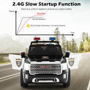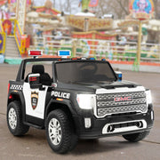 The Kids Ride On Police Car with Seat Belts and Door Locks - 12V Electric Toy Vehicle Introducing the Kids Ride On Police Car with Seat Belts and Door Locks - 12V Electric Toy Vehicle, a thrilling and adventurous ride-on car that will bring endless joy to your little ones. This 2-seater ride-on truck is not only a cool gift but also a safe and durable toy for your kids to enjoy. Sturdy Construction and Safety Features Constructed from high-quality and durable PP material, ensuring long-lasting use ASTM and CPSIA certifications guarantee safe and reliable operation 4 big wheels with spring suspensions provide stability and smooth rides on various flat roads Soft start function gently starts the car, ensuring a comfortable and safe experience Seat belts and door locks ensure your kids' safety while driving Multiple Control Options and Exciting Features Kids can control the truck through the manual operation panel, allowing them to feel like real drivers Parents can also take control of the car using the included remote control Sound effects and bright lights add an extra level of excitement and fun Multi-media player allows parents to connect other devices to play their children's favorite songs or stories Ample Storage Space and Modern Design Front engine box and back storage space provide plenty of room for your kids to store their toys, books, or other items Modern design with a sleek and stylish appearance Available in Black/White color Specifications: Brand: Honeyjoy Material: 100% New PP, Steel Size: 53.5" x 34" x 29" (L x W x H) Type: Licensed GMC Ride On Truck Style: Modern Set Includes: 1 x Licensed GMC Ride On Truck, 1 x Charger, 1 x Remote Control Weight Capacity: 88 lbs Weight: 55 lbs Assembly Required: Yes Firmness: Medium Number of Items in Set: 1 Product: Kids Ride On Car Assembly Status: Assembly Required Department: Kids Indoor/Outdoor: Indoor & Outdoor Let your kids embark on thrilling adventures with the Kids Ride On Police Car with Seat Belts and Door Locks - 12V Electric Toy Vehicle. Order now and watch as their imaginations soar!