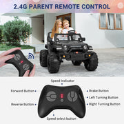 The Kimbosmart 24V Electric Battery-Powered Children's Ride-On Vehicle Truck Featuring LED Lights, MP3 Player, and Bluetooth Connectivity Similar Items Description This high performance 24V electric rc ride on car is perfect for your little racers who want to start driving like the grownups do! Two Seater design accommodates 2 kids at a time for sharing pleasure. Come with 2.4G remote control that make it possible parents control the speed and direction of the car. 4 wheels spring suspension ensure a smooth performance with less shock. Openable hood can be used to store kids' toys and other gadgets. Furthermore, dynamic music, bright LED lights and loud horn can not only provide a realistic driving experience but also bring endless fun. All in all, this electric ride on car crafted with safety material and certificated by ASTM certification will be a perfect toy for your kids. Specifications: Brand: Kimbosmart Theme: Cars Age Level: 3-4 Years Custom Bundle: No Recommended Age Range: 37-96 months Weight Capacity: under 106 lbs Height Limit: under 52.4 inch Battery: 24V7Ah Motor: 35Wx4 Charging Time: 8-12 hours Using Time: 40-90 mins Control Distance: 20m-30m Speed: 7.5 KM/H Seat Size: 20x8 inch Product Size: 49x39x35 inch Product Weight: 76.5 lbs 2WD/4WD: 4WD Key Features: [2 Kids Drive Together] - There are 2 wide seats to accommodate 2 kids at a time, so that kids can share driving fun together. [Two Operating Mode] - Children can operate the electric car by using pedal and steering wheel to operate their own electric car. [Parents can control the car through the 2.4Ghz remote control to enjoy the happiness of being together with babies. [Low Battery Reminder Funtion] - Powerful 24V7Ah battery powered ride on car comes with a charger to allow for 40-90 mins of playtime when fully charged. [Abundant Entertainment Function] - Equipped with the MP3 player, USB port, AUX outlet, FM radio. Able to connect your device by AUX Audio Line to play your music or stories. [Steady Driving Experience] - The ride on car adopts shock absorber spring, minimizing the shock feeling and ensuring a smooth driving. [More Convenient Functions] - Openable hood can be used to store kids' toys and other gadgets. Cup holder under the steer wheel frees your hands. Pull handle makes the kids car a portable toy. [Perfect Gift for Kids] - This riding toys are designed for kids ages 3-8 years, can hold a maximum of 106 pounds. Openable doors, adjustable seatbelt, bright headlights, horn and steering wheel provide your child with the most realistic driving experience possible. [Excellent Customer Service] - We are committed to product quality. If you have any questions about our electric ride on truck, feel free to contact us. Our professional customer service team will solve your problem within 24 hours. Package Includes: Electric Car x 1 Remote Control x 1 Charger x 1 User Manual x 1 AUX Audio Cable x1 Notes: Children should use and drive this toy cars under the supervision of adults. Please kindly check the product size and take your kids actual body shape into consideration before purchase. The cars come in 2 boxes, may not be delivered at the same time. Please wait patiently if you only receive part of them.