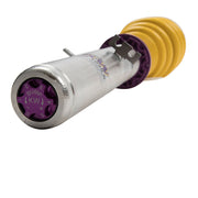 Technologie de pointe du sport automobile pour plus de performances sur la route. Comme tous les produits de suspension développés par le fabricant de suspensions KW automotive et fabriqués en Allemagne, le kit de suspension à ressorts hélicoïdaux KW V3 offre également un avantage considérable en termes de réserves de sécurité sur la route. Grâce au châssis avec ses amortisseurs, ressorts et éléments de ressorts en élastomère de haute qualité, les mouvements de tangage et de roulis lors des changements de charge tels que les manœuvres d'évitement, les virages, l'accélération et le freinage sont considérablement réduits. Les distances de freinage sont également raccourcies. Grâce à un meilleur soutien et à un meilleur retour d'information, le conducteur se sent non seulement plus en sécurité, mais la conduite au quotidien devient encore plus sûre. Grâce à l'amortissement en compression et en détente, qui peuvent être réglés séparément et indépendamment l'un de l'autre, la configuration des amortisseurs peut être adaptée à vos préférences de conduite personnelles ou aux modifications du véhicule telles que le poids, les caractéristiques des pneus ou la rigidité modifiée du véhicule. Une véritable optimisation des performances n'est possible qu'avec ce système unique et breveté. Cela permet par exemple d'augmenter la force d'amortissement en compression et d'obtenir plus d'adhérence des pneus, d'améliorer le comportement en virage et de réduire le squat sans modifier simultanément l'amortissement en détente qui est parfaitement adapté à la raideur des ressorts, un scénario qui entraîne une réduction de l'adhérence et la perte de performance associée. Le kit combinés filetés KW V3 est l'outil idéal pour les conducteurs axés sur la performance et les amateurs de tuning expérimentés qui accordent une grande importance aux performances globales de leur suspension. La Variant 3 est dotée de la technologie brevetée TVR-A et TVC-A qui permet de régler séparément l'amortissement en détente et en compression. La vaste plage de réglage de la détente et de la compression configurables indépendamment permet d'influencer directement le comportement de la direction, la stabilité directionnelle, l'adhérence et les caractéristiques de maniabilité pour des résultats sûrs et reproductibles à la limite de la dynamique de conduite.