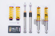 Technologie de pointe pour le sport automobile ou plus de performances sur la route. Comme tous les produits de suspension développés par KW automotive et fabriqués en Allemagne, le kit de suspension KW Variant 3 Coilover offre également une amélioration significative sur la route. Grâce aux amortisseurs, ressorts et éléments de suspension en élastomère de haute qualité, les mouvements de tangage et de roulis lors des changements de charge tels que les manœuvres d'évitement, les virages, l'accélération et le freinage sont considérablement réduits. Les distances de freinage sont également raccourcies. Grâce à un meilleur soutien et à un meilleur retour d'information, les conducteurs se sentent non seulement plus en confiance, mais la conduite au quotidien est améliorée. Grâce à l'amortissement en compression et en détente, qui peuvent être réglés séparément et indépendamment l'un de l'autre, la configuration des amortisseurs peut être personnalisée en fonction de vos préférences de conduite personnelles ou des modifications du véhicule telles que le poids, les caractéristiques des pneus ou la rigidité modifiée du véhicule. Une véritable optimisation des performances n'est possible qu'avec ce système unique et breveté. Cela permet par exemple d'augmenter la force d'amortissement en compression et d'obtenir plus d'adhérence des pneus, d'améliorer le comportement en virage et de réduire le squat sans modifier simultanément l'amortissement en détente qui est adapté de manière optimale à la raideur des ressorts - un scénario qui entraîne une réduction de l'adhérence et la perte de performance associée. Le kit combinés filetés KW Variant 3 INOX-LINE est l'outil idéal pour les conducteurs axés sur la performance et les amateurs de tuning expérimentés qui accordent une grande importance aux performances globales de leur suspension. La Variant 3 est dotée de la technologie brevetée TVR-A et TVC-A - qui permet un réglage séparé de l'amortissement en détente et en compression. La vaste plage de réglage de la détente et de la compression configurables indépendamment permet d'influencer directement le comportement de la direction, la stabilité directionnelle, l'adhérence et les caractéristiques de maniabilité pour des résultats sûrs et reproductibles à la limite de la dynamique de conduite.