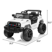 LEADZM LZ-922 Electric Mini Jeep for Kids with Dual Drive and 2.4G Remote Control Adventure Awaits! Introducing the LEADZM LZ-922 Electric Mini Jeep for Kids, the ultimate rc ride on adventure! This mini jeep is perfect for your little explorer, providing endless fun and excitement. With its dual drive system and 2.4G remote control, parents can choose to let their child drive manually or safely guide them using the remote control. Safety is our top priority, which is why this mini jeep is ASTM-certified and built with high-quality materials. The mini jeep is equipped with a built-in horn, LED lights, and an MP3 player with a radio and USB port, allowing your child to enjoy their favorite tunes while cruising around. The 4 wheels with spring suspension ensure a super smooth ride, while the automatic reset fuse provides protection for the circuit. Powered by a rechargeable 12V battery, this mini jeep comes with a charger to allow for hours of playtime. The 2.4G remote control features 3 different speed modes, as well as parking mode and forward/reverse functionality, making it easy to control the car and ensure your child's safety. The adjustable seat belt provides a safe and comfortable ride, and the mini jeep is recommended for children aged 3 to 6 years old. The maximum user weight is 62 lbs (28kg), and the speed ranges from 2-4 KM/H (2.5 mph max). Specifications: Brand: Unbranded Color: White Material: PP Plastic, Metal RC Mode: 3 Speeds Options Wheels: 11”(Dia) Each Battery Type: 12V 4.5AH Package Includes: 1 x Electric Car 1 x 2.4G Remote Control 1 x Charger 1 x Manual