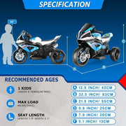 The Licensed BMW 12V Battery Powered Electric Ride-On Motorcycle for Kids is not just a toy, but a thrilling adventure waiting to happen! Let your little ones create unforgettable memories as they embark on exciting ride-on escapades with this incredible motorcycle.Key Features:- Bright LED headlights illuminate the night, adding an extra element of excitement to their nighttime adventures.- The wide seat and easy-to-grip handles ensure maximum comfort for your young riders, allowing them to fully enjoy their driving experience.- The wear-resistant and non-slip wheels are designed to tackle various terrains, making this ride-on motorcycle suitable for any adventure.- With its 3-wheeler structure, this motorcycle offers improved stability and balance, giving your little riders the confidence to explore to their heart's content.- The one-key start and foot pedal make operating this ride-on motorcycle a breeze, allowing your kids to easily take control of their thrilling journey.- Equipped with a high/low speed switch and forward/reverse switch, this motorcycle offers versatile driving options for your little adventurers.- The built-in horn sound, music, and story feature provide endless fun and entertainment, keeping your kids engaged throughout their ride.- With a USB port and MP3 input, this ride-on motorcycle offers numerous resources for your little ones to enjoy their favorite tunes while on the go.- Safety is a top priority, which is why this Kids Motorcycle has passed ASTM and CPSIA certifications. It is made of non-toxic and odorless PP material, ensuring the health and well-being of your children.Product Specifications:- Brand: Caroma- Year: 2023- Theme: Cars- Recommended Age Range: 3-11- Age Level: 3-8 Years- Character Family: Toy Story- Color Options: Blue, Red, White- Battery: 12V 4.5AH- Material: PP + Metal- Package Includes: 1 x Kids Ride on Motorcycle, 1 x Charger- Suitable Age: 37-96 Months OldGet ready for a truly immersive and realistic driving experience with the Licensed BMW 12V Battery Powered Electric Ride-On Motorcycle for Kids! Its cool design, including the extended seat and easy-to-grip handles, ensures that your little riders will have the most comfortable and enjoyable driving experience possible.No road is off-limits for this ride-on motorcycle! The non-slip and wear-proof wheels provide a strong grip, making it suitable for various surfaces such as wooden floors, lawns, rubber runways, cement/asphalt roads, or any other flat ground your little adventurers want to conquer.Looking for the perfect gift for your child's birthday or a special occasion? Look no further! This 12V battery-powered motorbike is the ultimate present that will bring joy and excitement to your little ones' faces on their special day.The multi-functional control panel adds to the realism of this ride-on toy. Equipped with a horn button and several built-in music and study/nursery rhymes, this 3-wheeled motorcycle will make your little riders feel like they're in a real-life adventure.Let your children's imaginations run wild as they take the wheel of the Licensed BMW 12V Battery Powered Electric Ride-On Motorcycle for Kids. Get ready for endless fun, laughter, and unforgettable moments with this thrilling ride-on toy.
