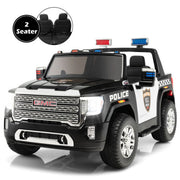 Licensed GMC Kids Ride On Police Car 2-Seater Truck with Remote Control and Music - 12V