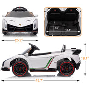 Licensed Lamborghini Style Kids Ride On Car with Remote Control, Music, and LED Lights - 12V