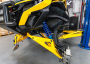 Check out this one of a kind Upper Control Arm fabricated out of tubed 1.50″ Chromoly with a machined Ball Joint mount for your Maverick R. The heimed pivot points give you longevity in your maintenance program while offering a smooth ride in tough terrains. This Upper Control arm allows up to a 3.0 King Coilover with a Finned Reservoir. This Upper Control Arm adds strength and durability to your Maverick R and gives you piece of mind in your machine while you are offroading your SxS.
