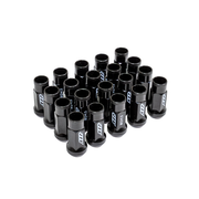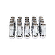 Replace your old rusty and crusty lug nuts with our set of open ended racing style lug nuts. These lug nuts are a standard M12 x 1.5mm thread pitch with a long throat for extended lug studs. They feature a 60 degree conical seat which is perfect for almost all aftermarket wheels. Made of carbon steel and use a standard 17mm socket. Knurled end for easy on and off. Sold in sets of 20.Â
