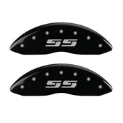 Ensemble avant 2 couvre-étriers, avant gravé : style Silverado/SS, finition avec revêtement en poudre noire, caractères argentés.