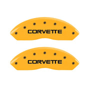 Lot de 4 couvre-étriers, gravés avant et arrière : C4/Corvette, finition poudre jaune, caractères noirs.