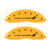 Lot de 4 couvre-étriers, gravés avant et arrière : avec bandes/Challenger, finition peinture poudre jaune, caractères noirs