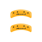 Lot de 4 couvre-étriers, gravés avant : Accord - gravés arrière : Accord, finition peinture poudre jaune, caractères noirs