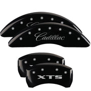 Lot de 4 couvre-étriers, gravés avant : Cadillac - gravés arrière : XTS, finition poudre noire, caractères argentés.