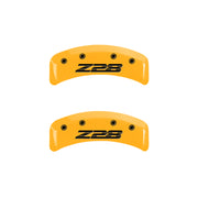 Lot de 4 couvre-étriers, gravés à l'avant : Gen 4/Camaro - gravés à l'arrière : Gen 4/Z28, finition peinture poudre jaune, caractères noirs