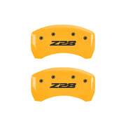Lot de 4 couvre-étriers, gravés à l'avant : Gen 4/Camaro - gravés à l'arrière : Gen 4/Z28, finition peinture poudre jaune, caractères noirs