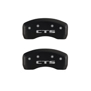 Lot de 4 couvre-étriers, gravés à l'avant : Cursive/Cadillac - gravés à l'arrière : CTS, finition poudre rouge, caractères argentés.