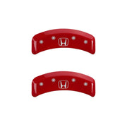 Lot de 4 couvre-étriers, gravés à l'avant : Honda - gravés à l'arrière : logo H, finition peinture poudre jaune, caractères noirs