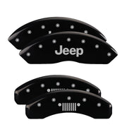 Couvre-étriers MGP 4 avec logo gravé sur la calandre avant et arrière Jeep, finition noire, argent anthracite, Jeep Wrangler 2019