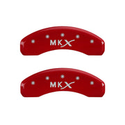 Lot de 4 couvre-étriers, gravés à l'avant : Lincoln - gravés à l'arrière : MKX, finition poudre rouge, caractères argentés.