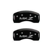 Lot de 4 couvre-étriers, gravés à l'avant : Lincoln - gravés à l'arrière : MKZ, finition avec revêtement en poudre noire, caractères argentés.