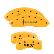 Lot de 4 couvre-étriers, gravés à l'avant : Lincoln - gravés à l'arrière : MKX, finition peinture poudre jaune, caractères noirs