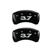 Lot de 4 couvre-étriers, gravés avant : Mustang - gravés arrière : 3,7, finition poudre noire, caractères argentés.