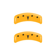Lot de 4 couvre-étriers, gravés à l'avant : Pontiac - gravés à l'arrière : Arrow, finition peinture en poudre jaune, caractères noirs