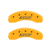 Lot de 4 couvre-étriers, gravés avant et arrière : Gen 5/SS, finition peinture poudre jaune, caractères noirs