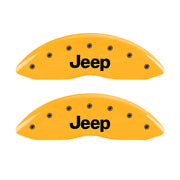 Lot de 4 couvre-étriers, gravés avant et arrière : JEEP, finition peinture poudre jaune, caractères noirs