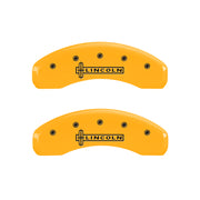 Lot de 4 couvre-étriers, gravés avant et arrière : Lincoln, finition peinture poudre jaune, caractères noirs